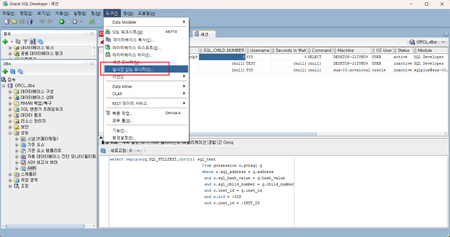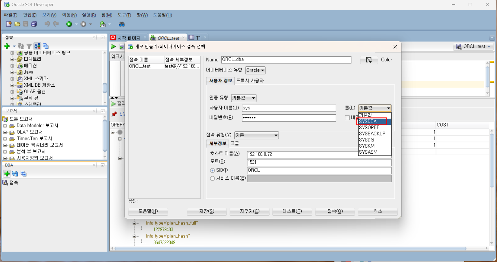 DBA는 sysdba 권한이 있는 계정으로 접속해야한다