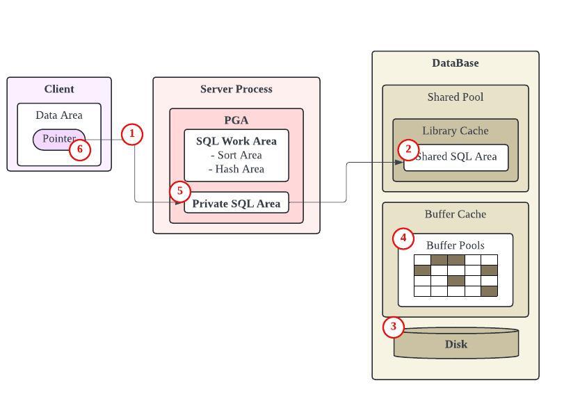 2. DB storage 또는 buffer cache 에 있는 데이터를 Private SQL Area에 저장후에 Client에게 반환