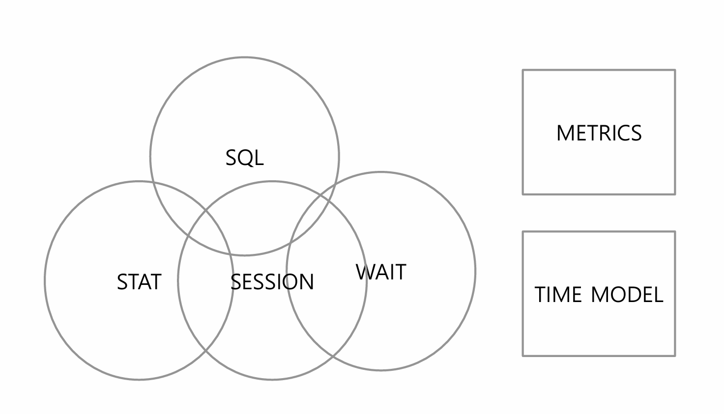 STAT과 WAIT은 겹치지 않으며, SQL, SESSION은 여러 요소에 영행을 줄 수 있다