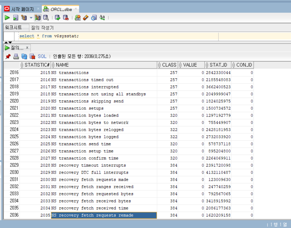 - v$system_wait_class -> v$waitclassmetric (1분단위) -> v$waitclassmetric_history ( 1분전과의 비교가 아닌 더 과거를 보고 싶다면 )
