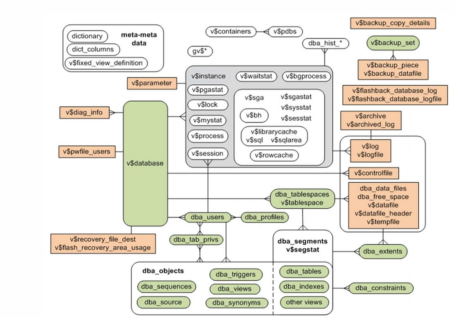 Oracle 구성하는 요소의 세부적인 정보를 제공한다