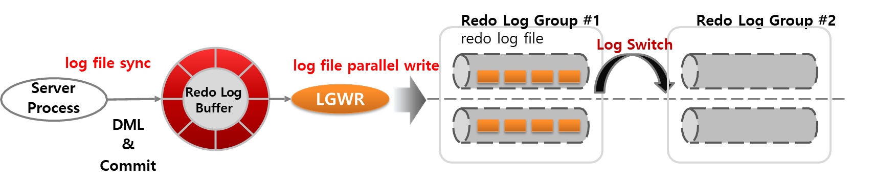 - Server Process 가 DML 작업을 하면 Redo Log Buffer에 쌓게 된다