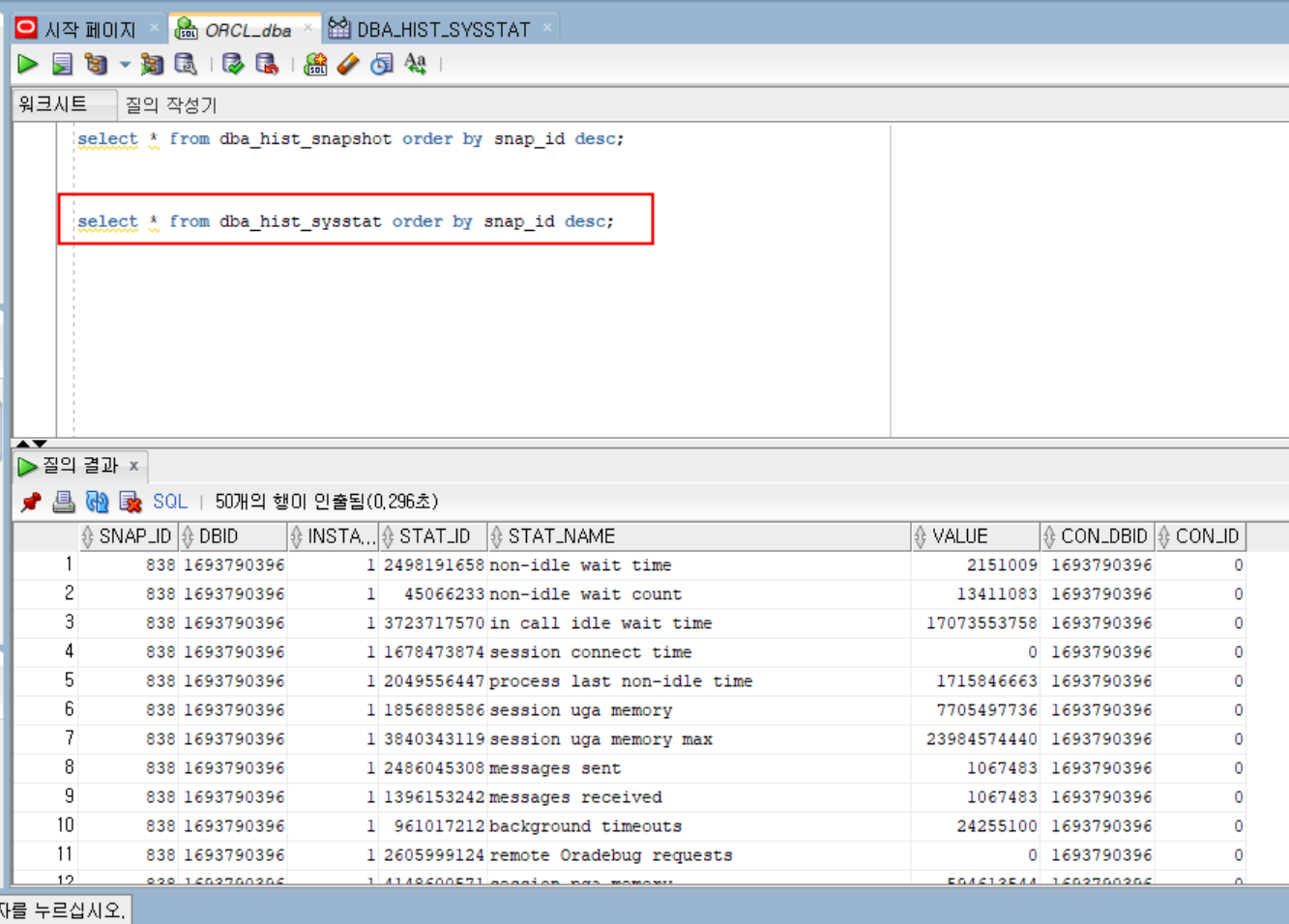 DBA_HIST_SYSSTAT 으로 어떤 state 정보가 있는지 확인할수 있다