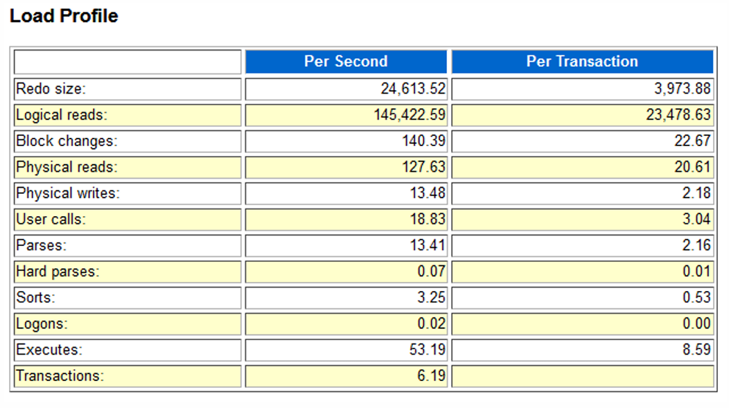 | [Oracle] AWR Report 보는 법 - Load Profile 항목은 어떻게 보는가 (0) | 2024.06.06 |