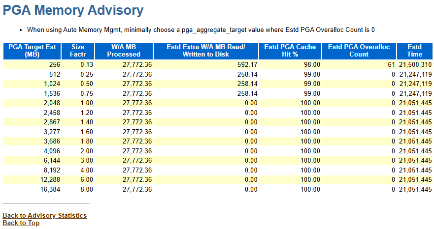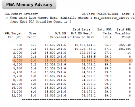 Oracle 에서 제공하는 뷰인 V$xxx_ADVICE를 통해 PGA와 SGA를 권고받았었다.