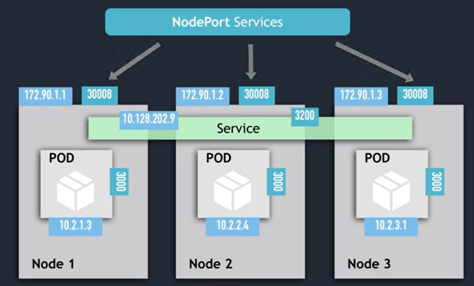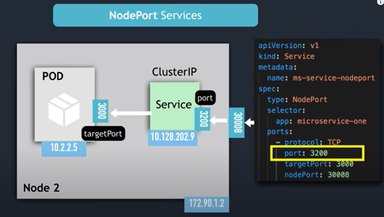 Node는 30000 로 열려있고 그건 Service port가 3200과 연결된다