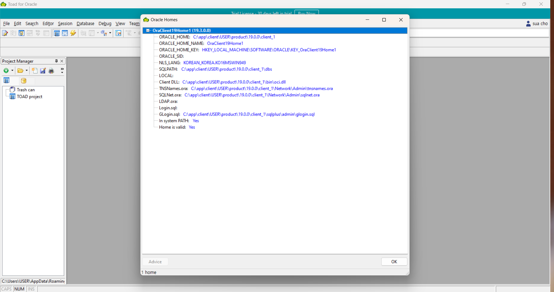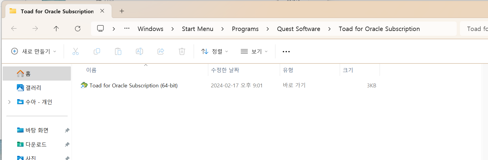 경로: C:\ProgramData\Microsoft\Windows\Start Menu\Programs\Quest Software\Toad for Oracle Subscription