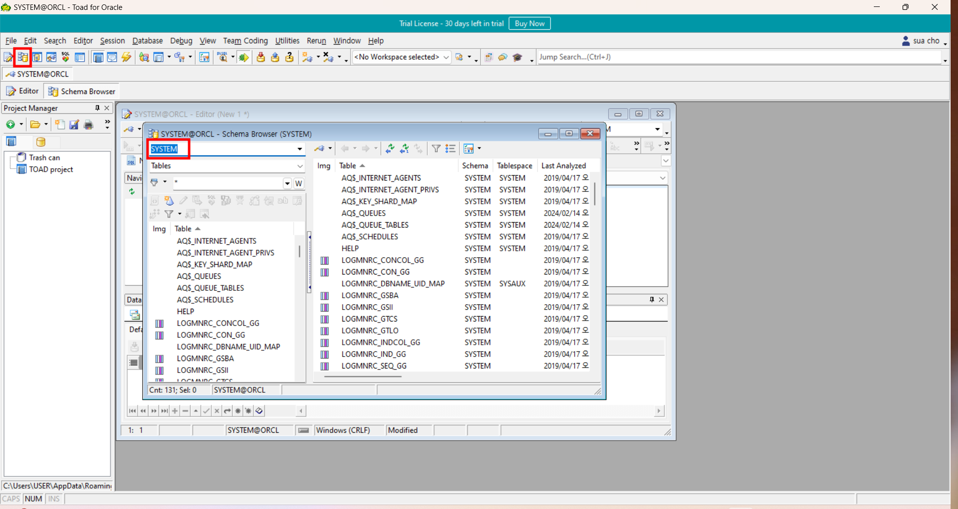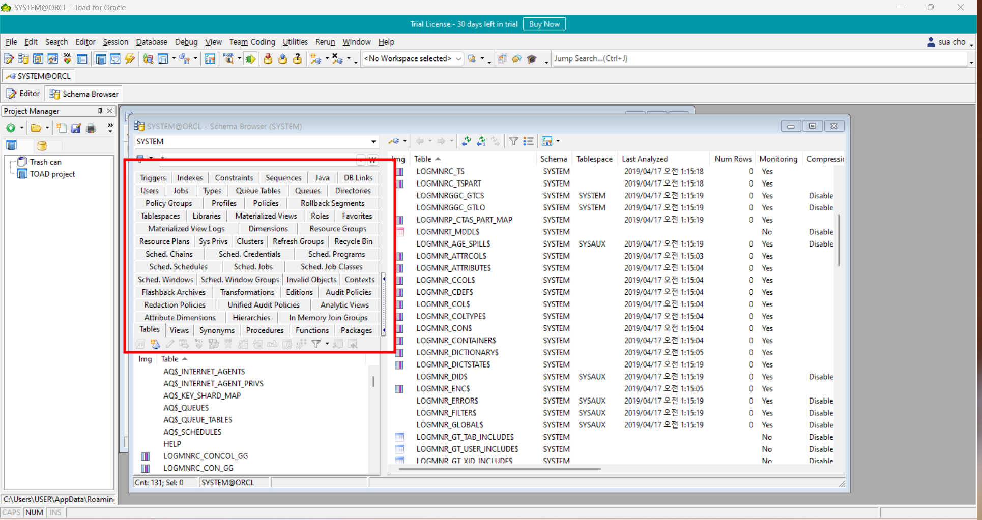 [Oracle] Toad 설치 & Schema Browser 설정하기 (Left Hand Side , browser style 변)