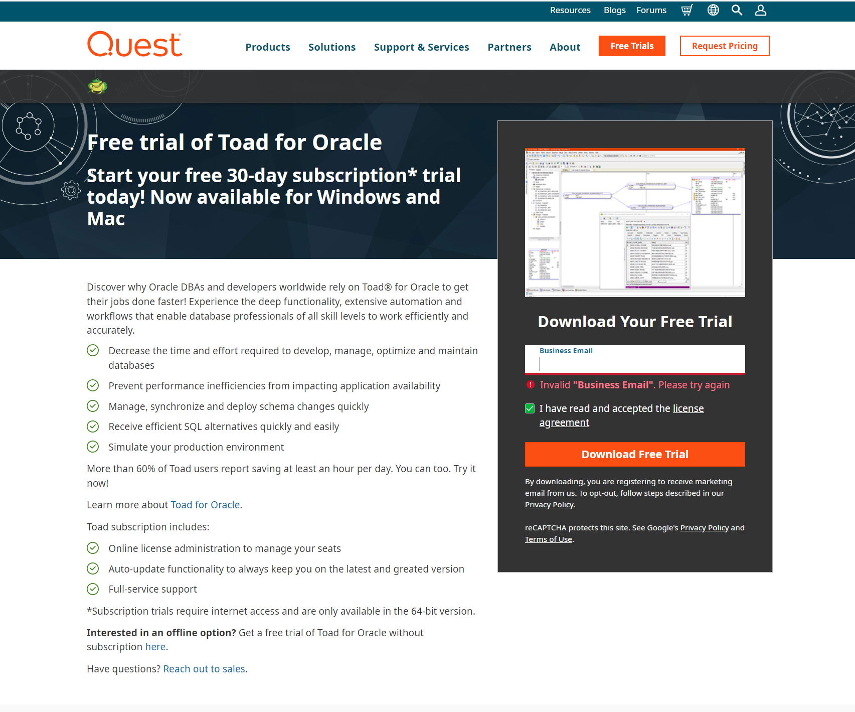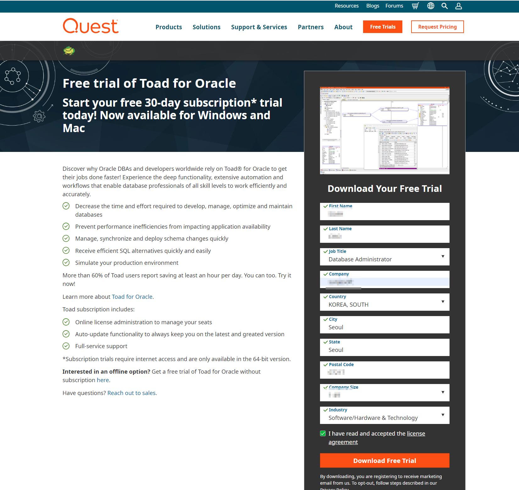 Toad for Oracle solutions are built to meet the needs of your specific job function. Try Toad free for 30 days.