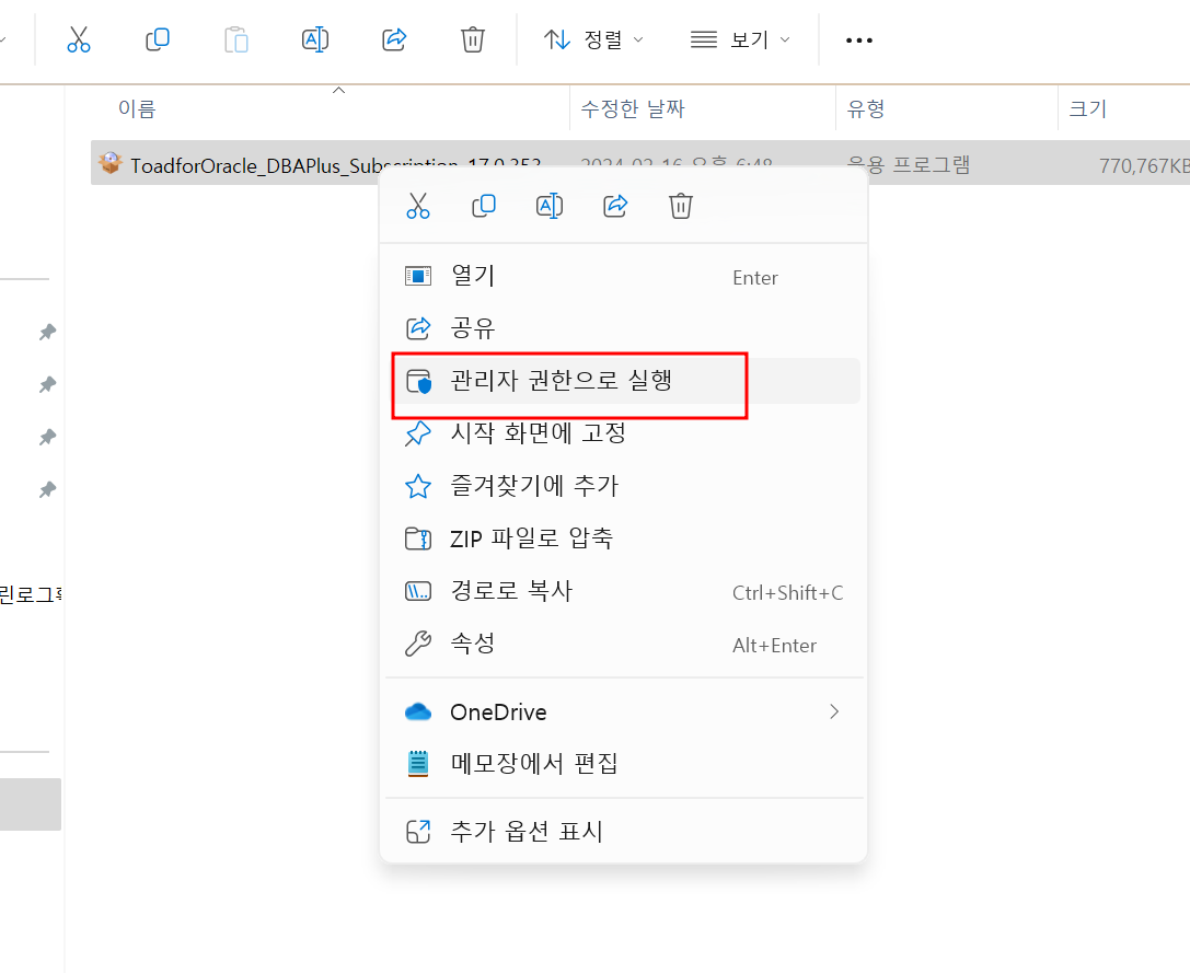 - 관리자 권한으로 실행