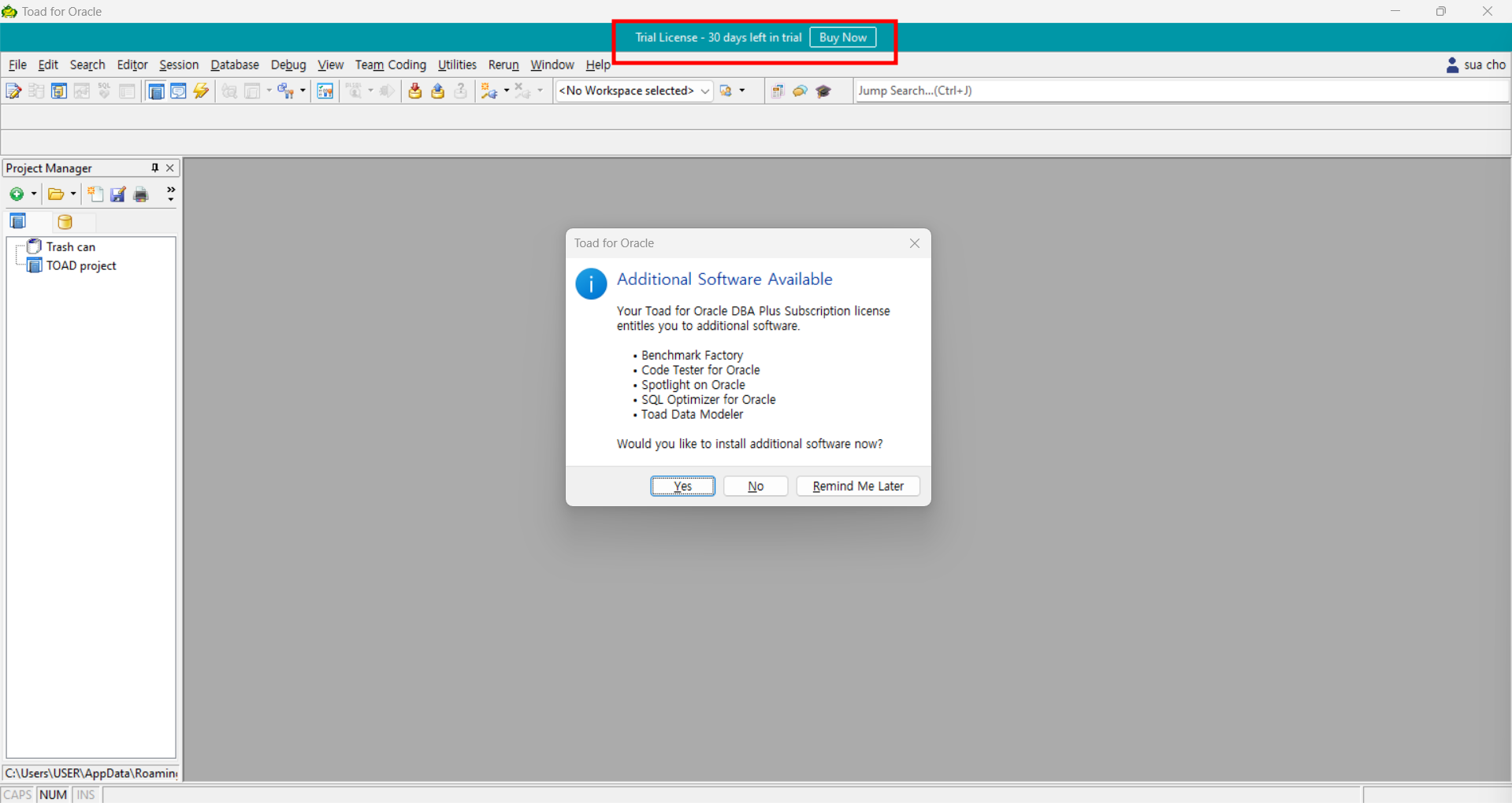trial이기에 30일 무료 라이센스이다